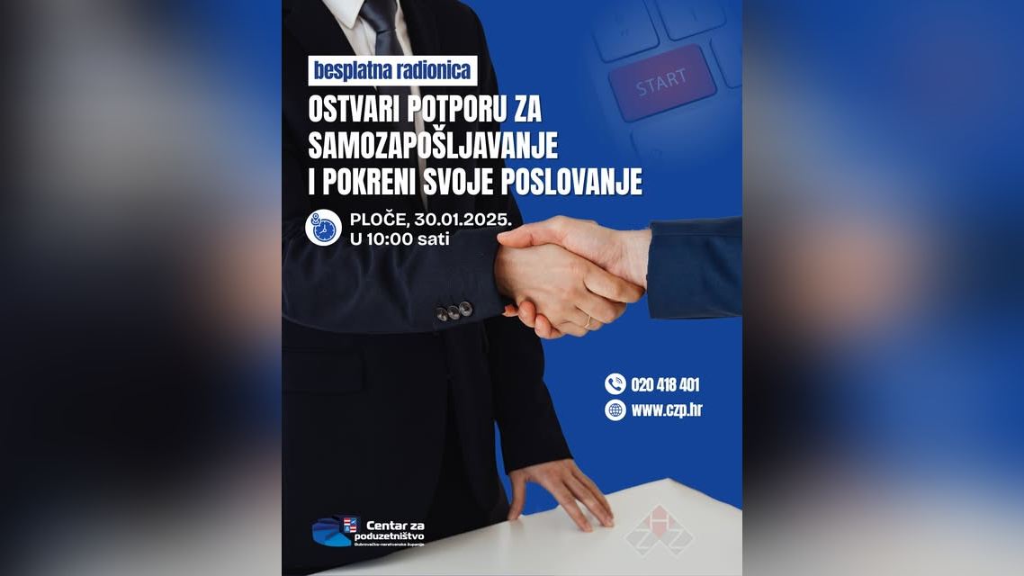 Centar za poduzetništvo Dubrovačko-neretvanske županije, u suradnji s Hrvatskim zavodom za zapošljavanje, organizira besplatnu radionicu “Ostvari potporu za samozapošljavanje i pokreni svoje poslovanje”, namijenjenu budućim poduzetnicima.
