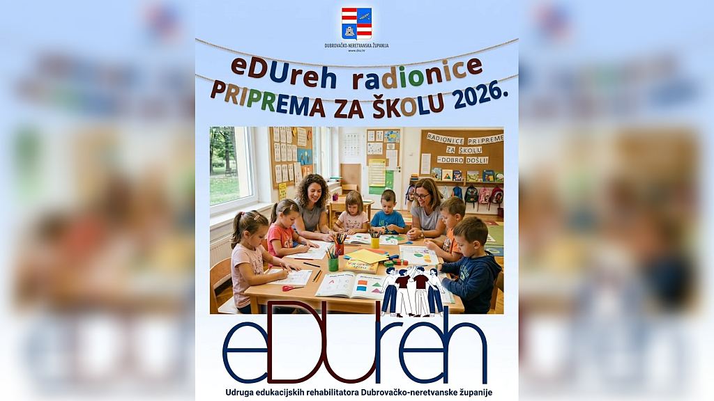 Udruga edukacijskih rehabilitatora Dubrovačko-neretvanske županije eDUreh u suradnji s Centrom za djecu, mlade i obitelj Dubrovnik te financijsku podršku Dubrovačko-neretvanske županije organizira ciklus radionica “Priprema za školu 2026.” za djecu školske obveznike u pedagoškoj godini 2026./2027. (djeca koja su do 1.4.2026. napunila 6 godina)