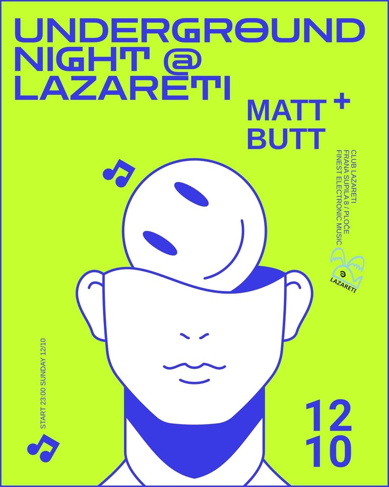 Pozivamo vas na UNDERGROUND NIGHT u klubu Lazareti u nedjelju, 12.10., s početkom u 23:00 sata.