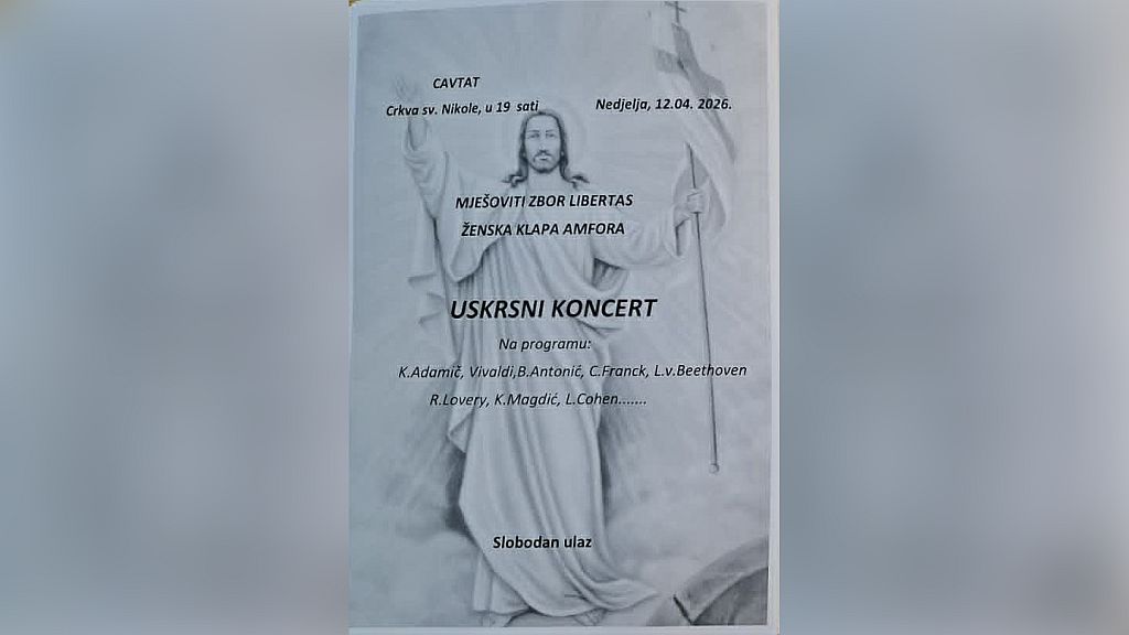 Zbor Libertas izvest će dio svojeg uskrsnog repertoara na koncertu u nedjelju, 12. travnja u Cavtatu. Koncert će se održati u Crkvi sv. Nikole u 19 sati. Uz zbor Libertas nastupit će i članice ženske klape Amfora.