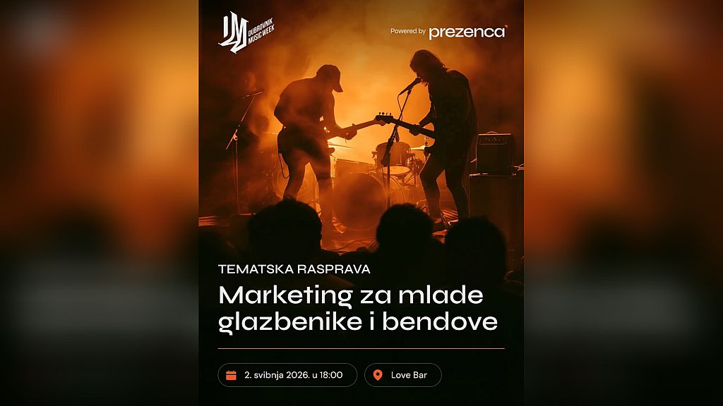 Love Bar Andrije Hebranga 95, Dubrovnik, Dubrovačko-neretvanska, Croatia𝐓𝐞𝐦𝐚𝐭𝐬𝐤𝐚 𝐫𝐚𝐬𝐩𝐫𝐚𝐯𝐚: 𝐦𝐚𝐫𝐤𝐞𝐭𝐢𝐧𝐠 𝐳𝐚 𝐦𝐥𝐚𝐝𝐞 𝐠𝐥𝐚𝐳𝐛𝐞𝐧𝐢𝐤𝐞 𝐢 𝐛𝐞𝐧𝐝𝐨𝐯𝐞 2. svibnja u 18:00 | Love Bar Tematska rasprava s renomiranim stručnjacima u polju marketinga u glazbi. Fokus će biti na kreiranje marketinškog pristupa i diskusiji o mogućnostima koje imaju mladi glazbenici - od društvenih mreža, PR aktivnosti, oglašvanja, YouTubea, itd. Voditelj: Dino Oreški (Upping.zone) Sudionici:Željka Rudar (by […]