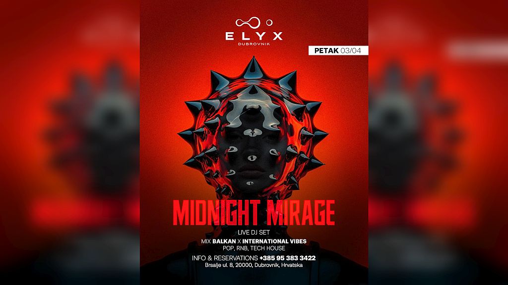 Apr 4 3.April @ 23:00 - 4:00 Midnight Mirage ELYX Night Club Brsalje 8, Dubrovnik Event Details Get Directions