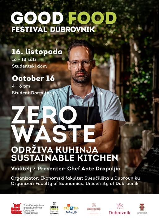 Zero Waste – Održiva kuhinja s chefom Antom Dropuljićem U sklopu nadolazećeg Good Food Festivala Dubrovnik ne propustite posebno predavanje posvećeno održivosti u gastronomiji. 16. listopada 16 – 18 sati Studentski dom Chef Ante Dropuljić provest će sudionike kroz principe zero waste kuhinje, pokazujući kako kreativnost i osviještenost mogu od ostataka stvoriti ukusna jela, a […]
