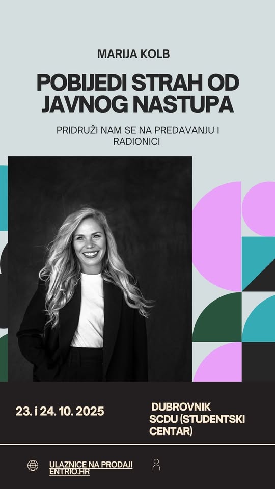 Dragi posjetitelji, pridružite nam se na Danima otvorenih vrata Nacionalnog parka Mljet i proslavi 65. rođendana, koji se održavaju od 24. do 26. listopada 2025. Iskoristite priliku i istražite netaknutu prirodu i kulturnu baštinu uz pratnju naših vodiča — ulaz je besplatan! Park je otvoren do 31. listopada, ali ovaj vikend je prava prilika za […]   PREDAVANJE: Četvrtak, 23.10.2025. od 19:00 h - 21:00 h ✔️Stav,hod i gestikulacija-važnost neverbalne komunikacije ✔️Kako strukturirati govor da bude jasan i uvjerljiv ✔️Tehnike za obuhvaćanje publike i upravljanje pažnjom ✔️Kako pretvoriti tremu u samopouzdanje ✔️Disanje i dikcija kao temelj sigurnog i stabilnog nastupa RADIONICA: Petak, 24.10.2025. od 15:00h-20:00h ✔️Obuzdajte strah i tremu kroz vježbe i […]