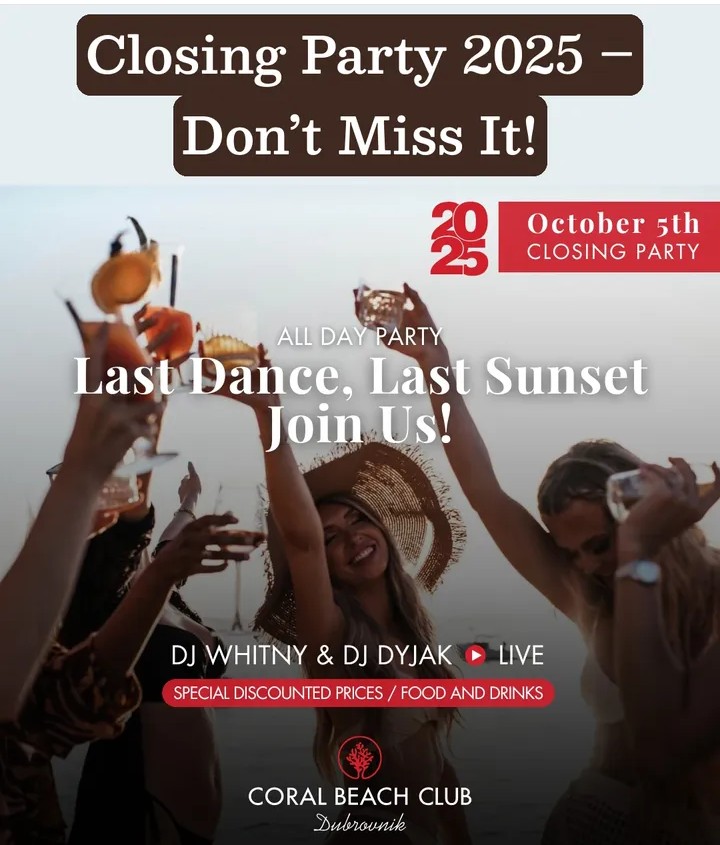 Dubrovnik, are you ready? 🌅 The ultimate Closing Party is coming to Coral Beach Club on Oct 5th! LIVE DJs Whitny & Dyjak | Discounted food & drinks all night! Who's with us for the last dance of the summer?   Pripremite se za još veću obiteljsku avanturu u uzbudljivom nastavku filma „Zecko Koš i Tajna Mrkog Hrčka“, u kojem naš krilati junak juriša u nove pustolovine koje će oduševiti male i velike gledatelje. Kad je napokon prigrlio vlastitu različitost kao izvor svoje posebnosti, ništa ne može zaustaviti Zecka Koša da raširi krila i krene u […]
