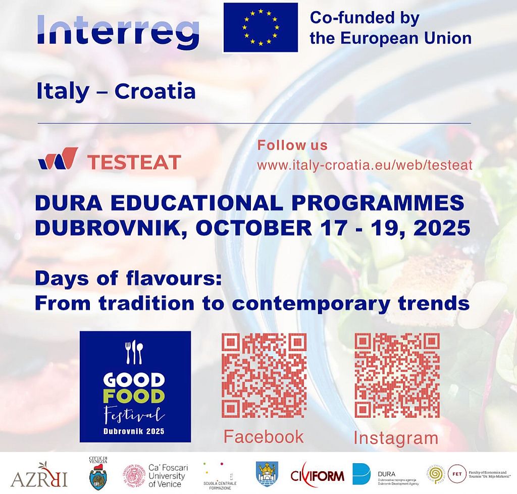 U sklopu Testeat projekta najavljujemo edukativne programe u sklopu Good Food festivala 2025. pod nazivom “Dani okusa: Od tradicije do suvremenih trendova”. U nastavku provjerite ckelokupni trodnevni program, a iz dana u dan predstaviti ćemo Vam partnere i sudionike! 17. listopada -Okrugli stol: prehrana / gastronomija / nutricionizam -Večera s poznatim chefom i učenicima Turističko-ugostiteljske […]