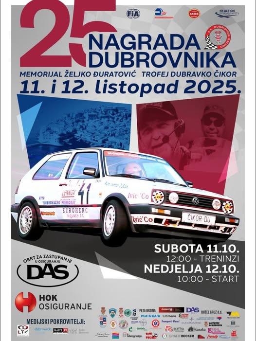 PRVENSTVO HRVATSKE U AUTOSLALOMU - KUP POVIJESNIH AUTOMOBILA - TOČNOŠT PRVENSTVO REGIJE JUG TRENINZI: 10:00-11:30 UTRKE: 12:00-17:00   Vikend za sve ljubitelje biciklizma! Osmislili smo nešto za svakoga — od najmlađih do iskusnih biciklista! Subota u 17:00 – Riva u Cavtatu Naši najmlađi biciklisti preuzimaju pozornicu! Zabavna dječja utrka, poligon spretnosti, vesela atmosfera i dobra zabava zajamčeni! Nedjelja u 12:00 – start sa Zvekovice Za rekreativce: 30 km Za one malo ozbiljnije: 90 […]   Vlak juri, nevolja stiže – a spašavanje tek počinje! Velika animirana pustolovina za cijelu obitelj – smijeh, akcija i prijateljstvo na svakoj stanici! Kad banda luckastih životinjskih prevaranata krene u još jednu svoju smicalicu, stvari brzo izmaknu kontroli – i završe usred prave pljačke vlaka! Sada su svi u opasnosti, a jedina nada je neobičan […] |