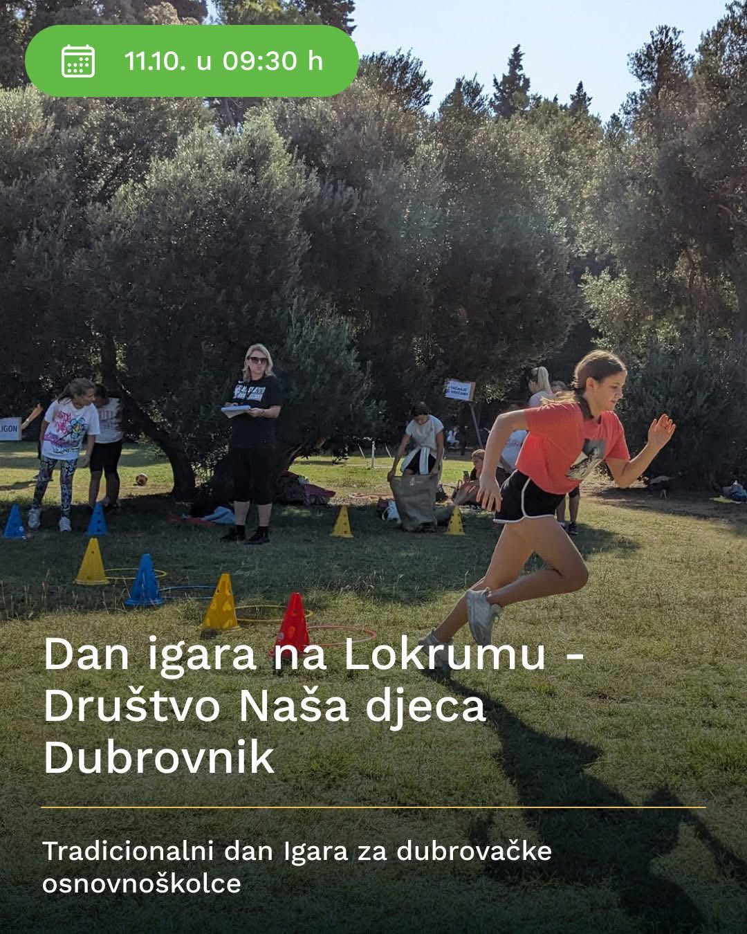 Subota na Lokrumu! Od 9:30 sati Društvo naša djeca tradicionalno organizira Dan igara za dubrovačke osnovnoškolce na otoku Lokrumu, nudeći djeci mogućnost sudjelovanja u sportskim natjecanjima i zabavnim igrama poput nogometa, odbojke, graničara, pikada, skoka u dalj i traženja kuglice, potičući druženje i aktivnost na otvorenom. Prijave se vrše putem e-maila: dnd.dubrovnik@gmail.com Molimo da u […] |