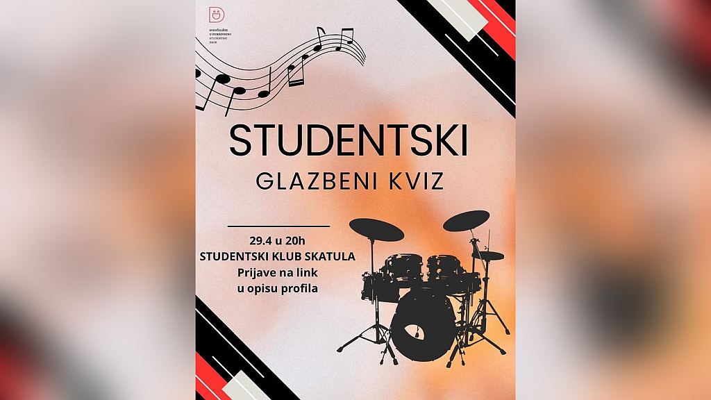 Apr 29 20:00 - 22:30 STUDENTSKI GLAZBENI KVIZ Studentski dom Marka Marojice 2b, Dubrovnik Event Details Get Directions