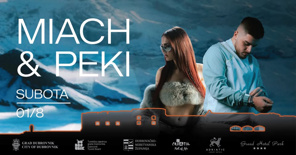Park Orsula Magistralni put 2, Dubrovnik, CroatiaVečer aktualne domaće scene na Orsuli donose izvođači koji oblikuju zvuk nove generacije Miach & Peki Miach se na sceni pojavila 2021. godine i brzo se profilirala kao jedno od vodećih imena nove generacije domaće pop scene. Kroz spoj R&B, pop i trap zvuka, te prepoznatljiv glazbeni i vizualni identitet, privukla je široku publiku. Iza […]