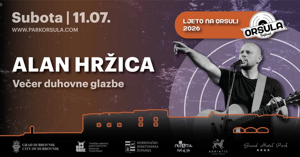 Park Orsula Magistralni put 2, Dubrovnik, CroatiaU sklopu velike koncertne turneje „Božja ljubav, Božja snaga“, koja obuhvaća više od dvadeset gradova u Hrvatskoj i inozemstvu, na pozornicu Parka Orsula stiže Alan Hržica. Alan Hržica hrvatski je izvođač i kantautor publici poznat po snažnim i emotivnim pjesmama koje su tijekom godina postale prepoznatljiv dio suvremene hrvatske duhovne glazbe. Dobitnik je diskografske nagrade […]