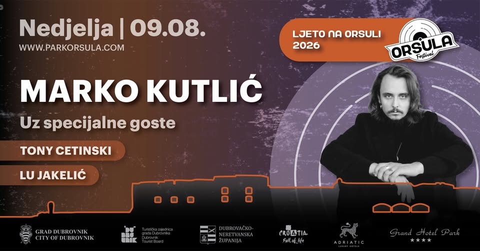 Park Orsula Magistralni put 2, Dubrovnik, CroatiaNakon rasprodanog koncerta u zagrebačkoj Tvornici kulture, kojim je otvorio svoju aktualnu koncertnu turneju, Marko Kutlić ovog ljeta pridružit će nam se i na Orsuli. U posljednjih nekoliko godina Marko Kutlić se profilirao kao jedno od prepoznatljivijih imena mlađe generacije domaće pop i rock scene. Pjesme poput "Kad god poželiš", “Neotuđivo”, "U zagrljaju spašeni" i […]