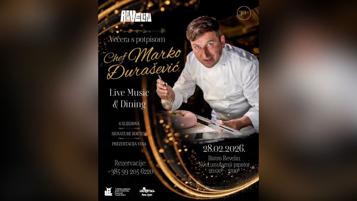 Bistro Revelin Sv Dominika bb, Dubrovnik, Croatia28.02.2026. | Bistro Revelin U novo uređenom interijeru pripremamo večer za pamćenje uz vrhunskog chefa Marko Đurašević. Ekskluzivni meni od 6 slijedova Predstavljanje prvog dubrovačkog signature koktela Premium vina vinarija našega kraja Bogat glazbeni program & vrhunska atmosfera Dobna granica: 30+ Broj mjesta je ograničen Rezervacije: +385 99 205 6220 Preporuka večeri: bez mobitela, bez fotografiranja – fokus je […]