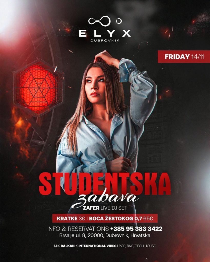 Petak više ne čeka ELYX je već upalio svjetla. ✨ Skripte se zatvaraju, čaše se otvaraju. DJ Zafer baca ritmove, kratke po 3€, boca žestokog 65€ i sve ima smisla