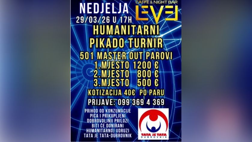 Cafe & night bar LEVEL Iva Vojnovića 39, Dubrovnik, Dubrovačko-neretvanska, CroatiaHUMANITARNI PIKADO TURNIR 5O1 MO PAROVI #humanitarniturnir #humanitarni #humanitarnipikadoturnir #caffenightbarlevel #tatajetata #tatajetatadubrovnik #pikado #pikadoturnirdubrovnik #pikadoturnir #dobroječinitidobro