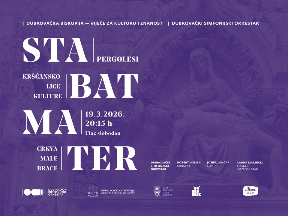 Crkva Male braće Placa 2, Dubrovnik, Dubrovačko-neretvanska, CroatiaGiovanni Battista Pergolesi djelo Stabat Mater skladao je u posljednjem tjednu svog života, a i danas je jedno od najpoznatijih djela duhovnog opusa koje se često izvodi. Dubrovačka publika imat će priliku poslušati ovo remek djelo baroka u četvrtak 19. ožujka u crkvi Male braće u sklopu manifestacije Kršćansko lice kulture.Nastupit će Dubrovački simfonijski orkestar […]