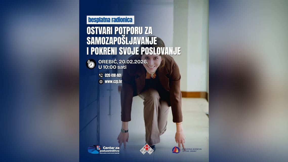 Dvorana Općine Orebić Obala pomoraca 24, Orebić, CroatiaRazmišljate o pokretanju vlastitog poslovanja i korištenju potpore za samozapošljavanje HZZ-a? Pridružite nam se na besplatnoj radionici „Ostvari potporu za samozapošljavanje i pokreni svoje poslovanje“ i saznajte kako pravilno započeti, koje su obveze te koje su vam financijske mogućnosti na raspolaganju. 20.02.2026. 10:00 sati Dvorana Općine Orebić, Obala pomoraca 24 Trajanje: 3 sata Sudjelovanje je […]