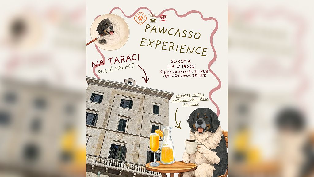 The Pucić Palace Ul. od Puča 1, Dubrovnik, Dubrovačko-neretvanska, CroatiaPripremili smo vam jednu zaista posebnu priču 🐾 Pawcasso Experience je prva ikad, jedinstvena radionica oslikavanja pjata s portretima pasa iz dubrovačkog azila – nastala u posebnoj suradnji @thepucicpalace, @azildubrovnik i @slatkokaocukar.hr Provedite subotu u najslađem društvu, na najljepšoj taraci u Gradu. Kafa, mimoze i maženje uključeni u cijenu 🥂 Vidimo se 🤍