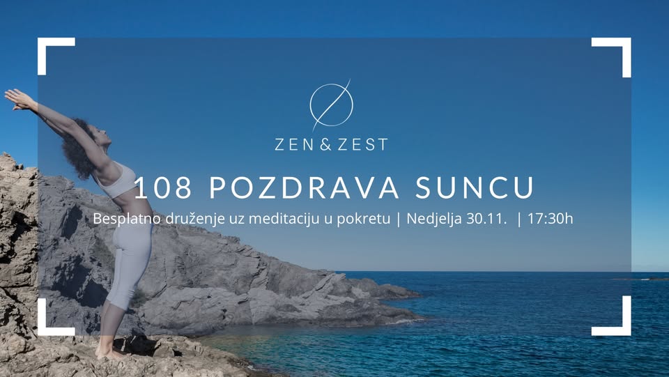 We DU Yoga Kralja Tomislava 7a, Dubrovnik, Dubrovačko-neretvanska, CroatiaDragi naši,Pozivamo vas na jedno od naših prvih besplatnih Zen & Zest druženja! U nedjelju, 30.11., od 17:30h zajedno ćemo ući u meditaciju u pokretu kroz praksu 108 Pozdrava Suncu.Ovaj tradicionalni ritual prakticira se diljem svijeta kako bi se obilježili novi počeci, promjene godišnjih doba, važne prijelazne trenutke — ali i kao moćan način da […]